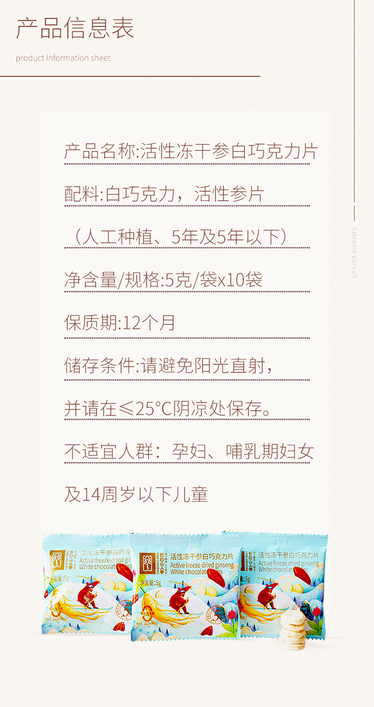活性冷凍乾燥人參白巧克力,1包5克-10包/盒-長白山人參