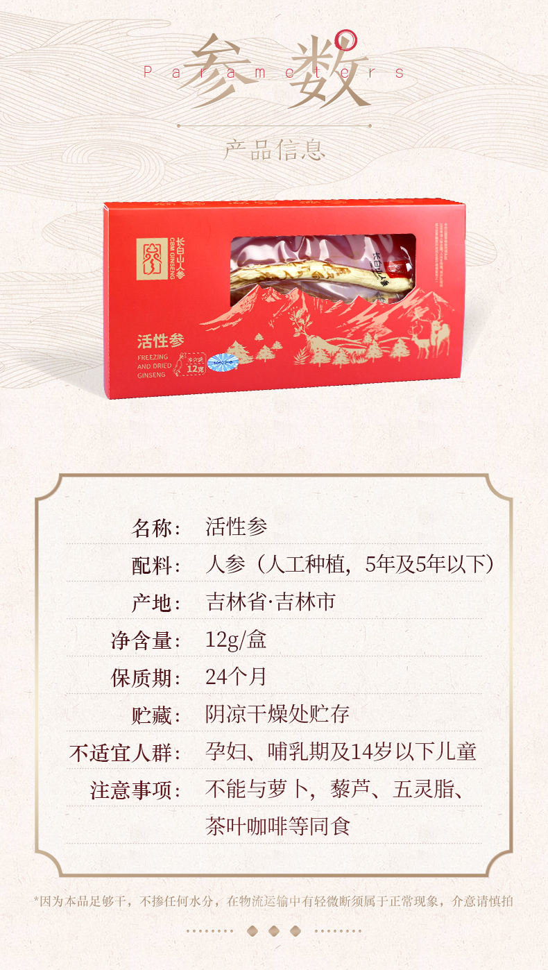 活性人參,禮品盒,12g/盒-長白山人參