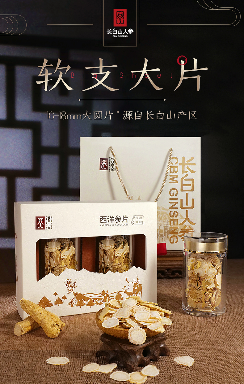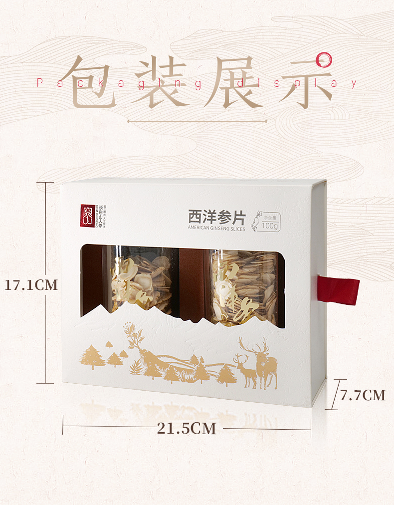 小罐美國人參片,簡易禮盒裝,100克/盒,φ1.6-長白山人參