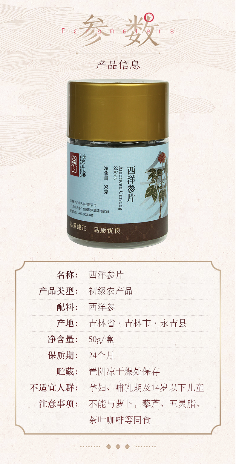 美國人參片,0.8片,50克-長白山人參