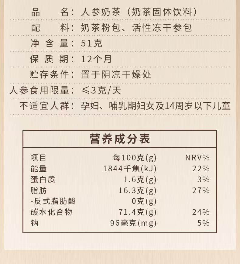 雲頂宮聯合冷凍乾燥人參奶茶,51g * 4杯-長白山人參