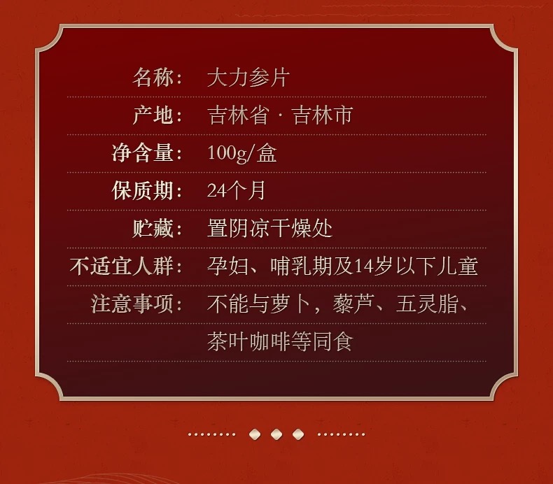 經典禮品組合 大理人參片,100g/盒-長白山人參