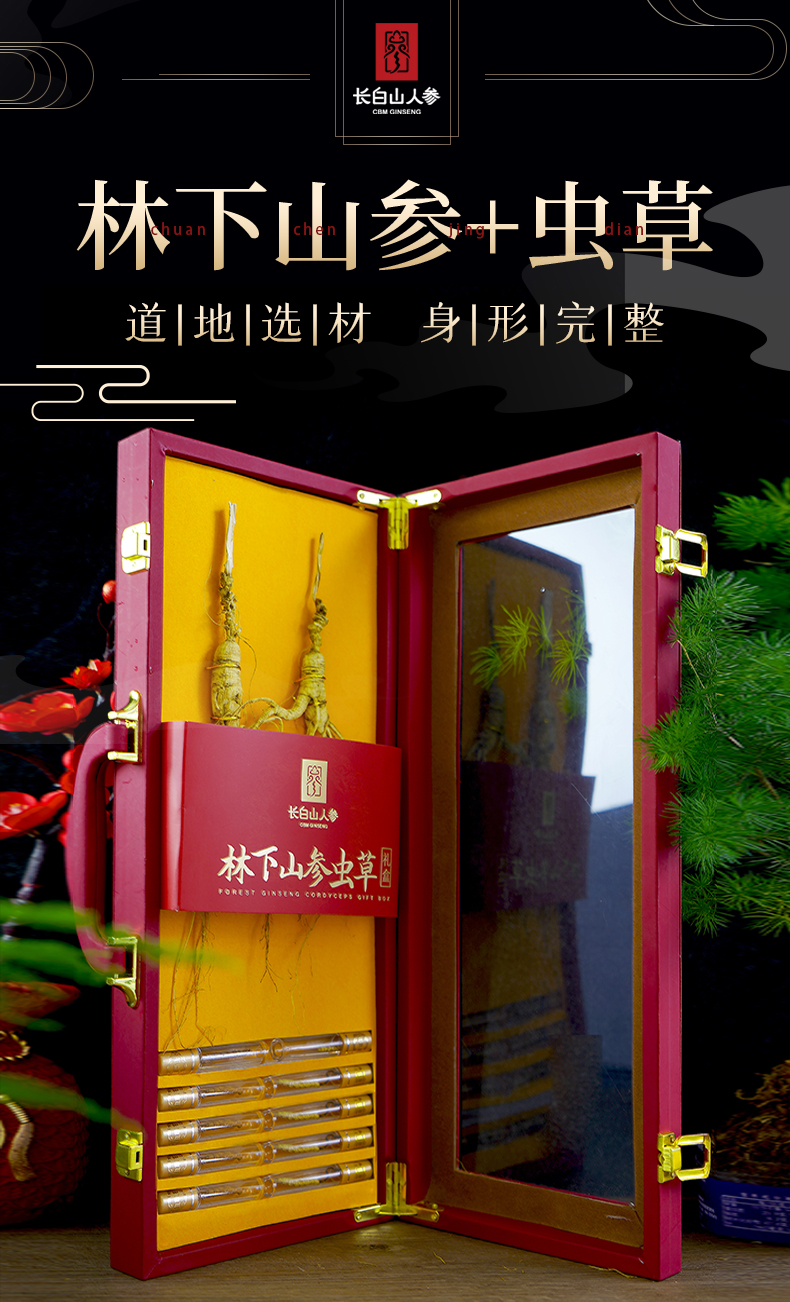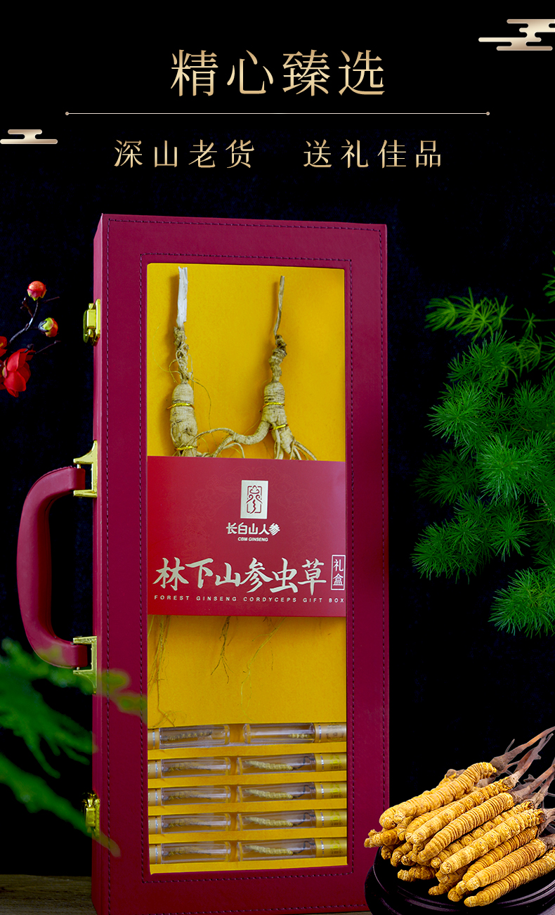 森林栽培的人參和冬蟲夏草禮盒-長白山人參