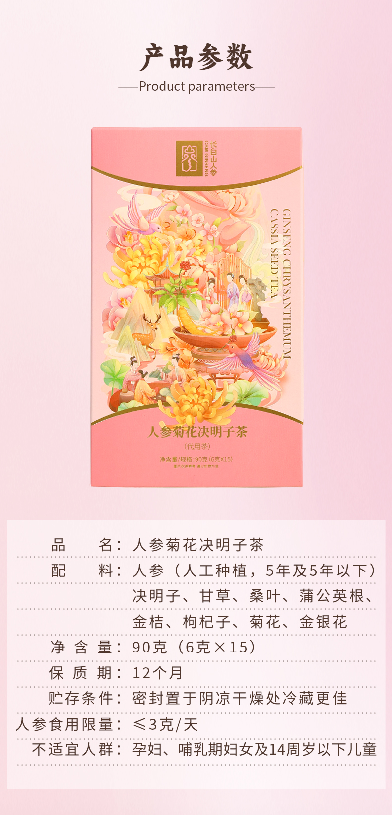 人參菊花與桂子茶,90 g (6 g *15 包)-長白山人參