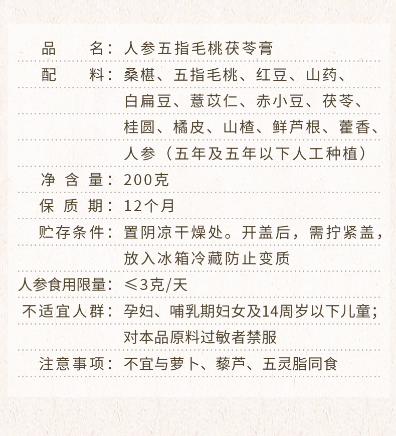 五指無花果與茯苓提取膏,200克/盒-長白山人參