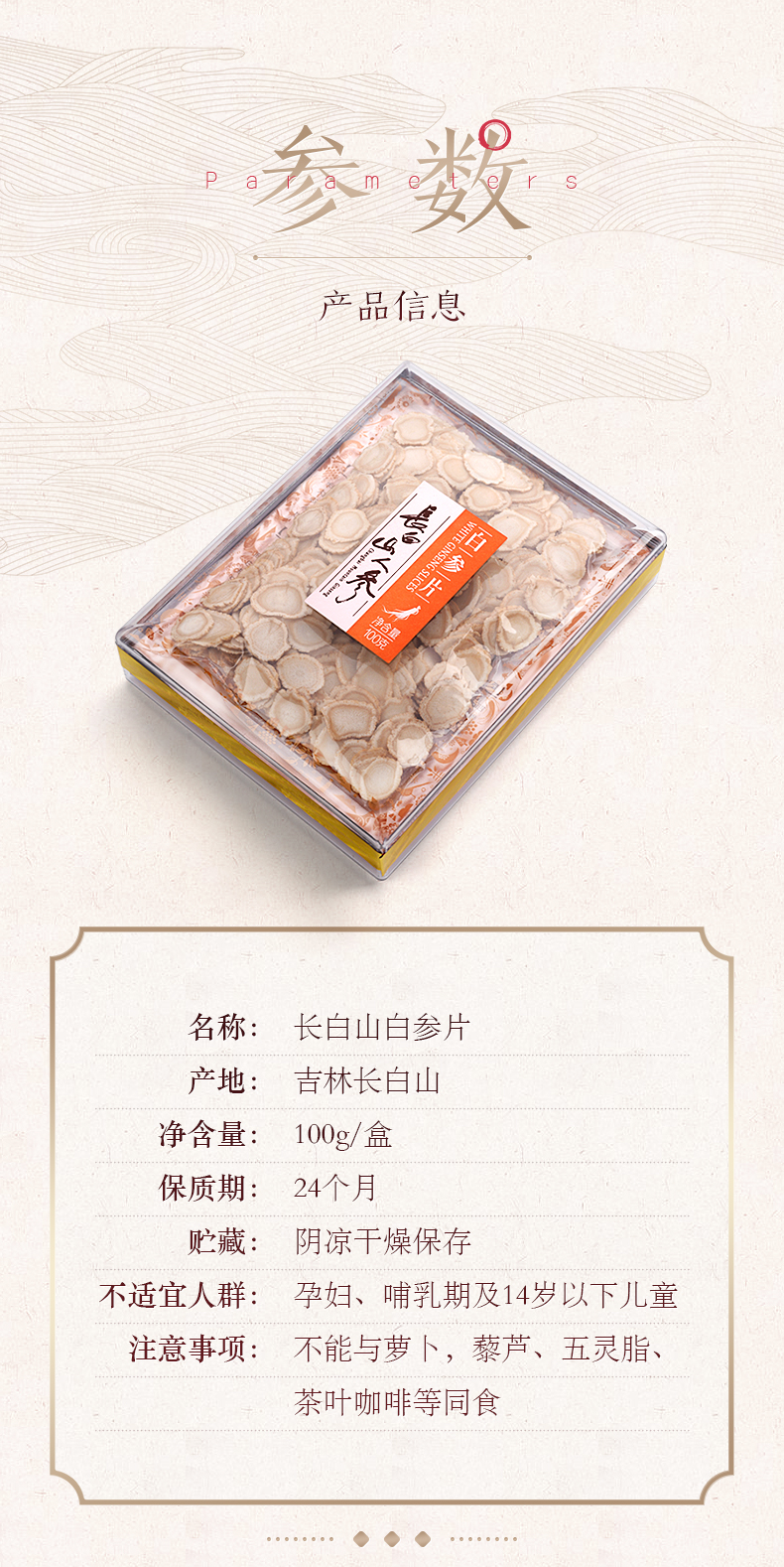 白參片,壓克力盒,100克/盒,φ1.2 - 1.4-長白山人參