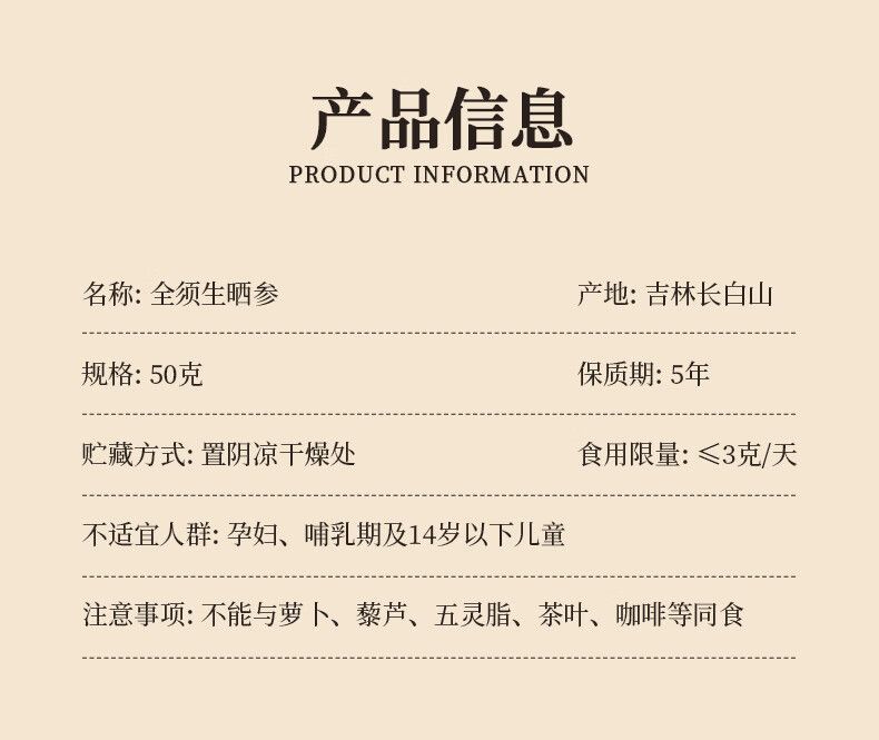 優質全日曬人參,50g(禮盒) - 長白山人參