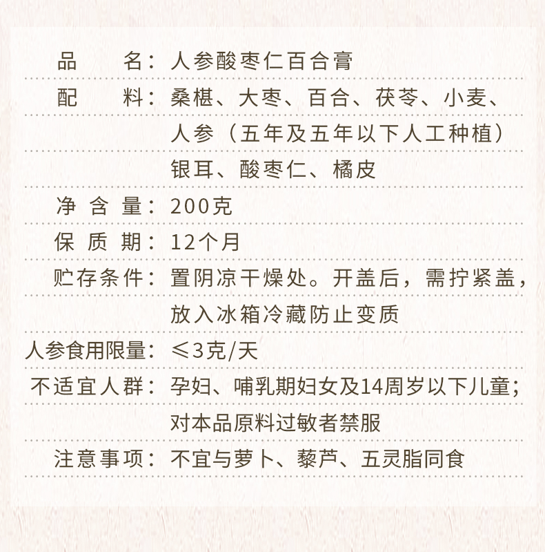 野棗種子和百合提取物膏,200克/盒-長白山人參